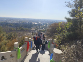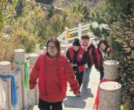 活动当天,参与活动的师生们一同前往美岱召景区登山步道。登山过程中,师生们彼此照应,分享登山技巧与重阳习俗典故。史娜老师还结合园林专业知识,为学生讲解沿途植被特征与生态保护要点,让志愿服务与专业学习有机融合,用脚步丈量责任,用陪伴传递温情。