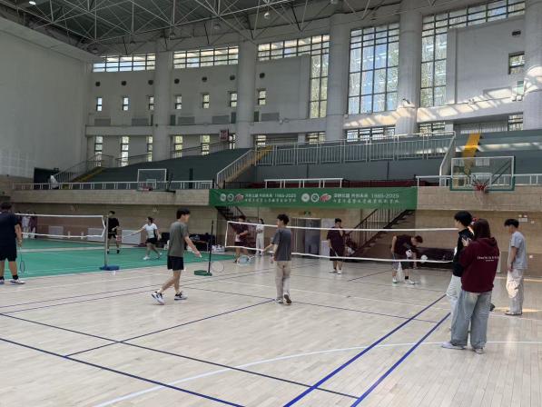 比赛当天,第九届“青羽杯”羽毛球初赛在学校体育馆开幕,各系以“系内选拔赛”形式独立开展比拼。赛前,各系工作人员快速布置场地、清点器材,引导选手签到、热身,确保赛事就绪。比赛正式开始后,单打、双打项目同步推进,选手们专注投入,时而跃起扣杀,时而俯身救球,羽毛球在球网间快速穿梭,场边同学的呐喊助威声此起彼伏。中途,赛事按计划暂停,选手们补水调整状态,裁判则核对已赛比分、检查场地。短暂休整后比赛继续,直至各系完成所有预设赛程,选手们有序离场,初赛在热烈氛围中顺利结束。