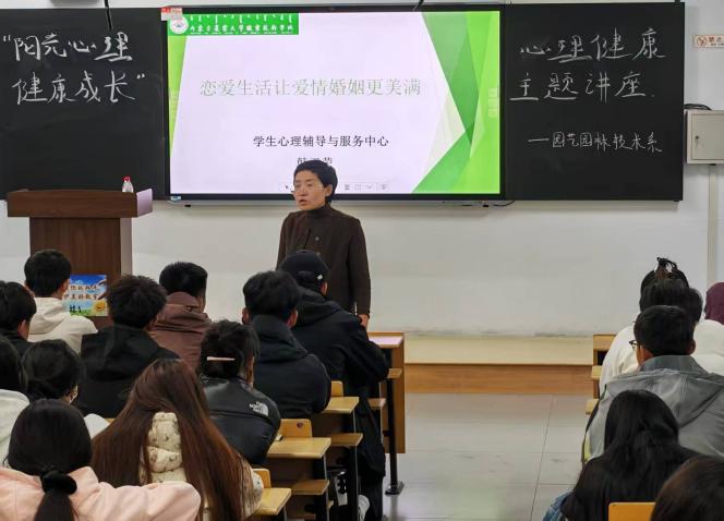 活动伊始,园艺园林技术系的同学们满怀期待地齐聚一堂。韩玉荣老师发表了热情洋溢的致辞,强调了心理健康对成长成才的重要性。紧接着,韩老师引领大家进入了第一个环节,从不同年代群体心理特点差异切入,深入剖析心理问题的识别方法与科学调适策略,她从恋爱心理特点、亲密关系经营、爱情与婚姻的正向发展等维度,在互动交流中学习如何正确处理恋爱中的情绪与矛盾,为塑造健康情感观、实现心理成长提供了有益指导,在轻松且富有启发性的氛围中,不仅学习到了扎实的心理健康知识,更提升了自我心理调适能力。